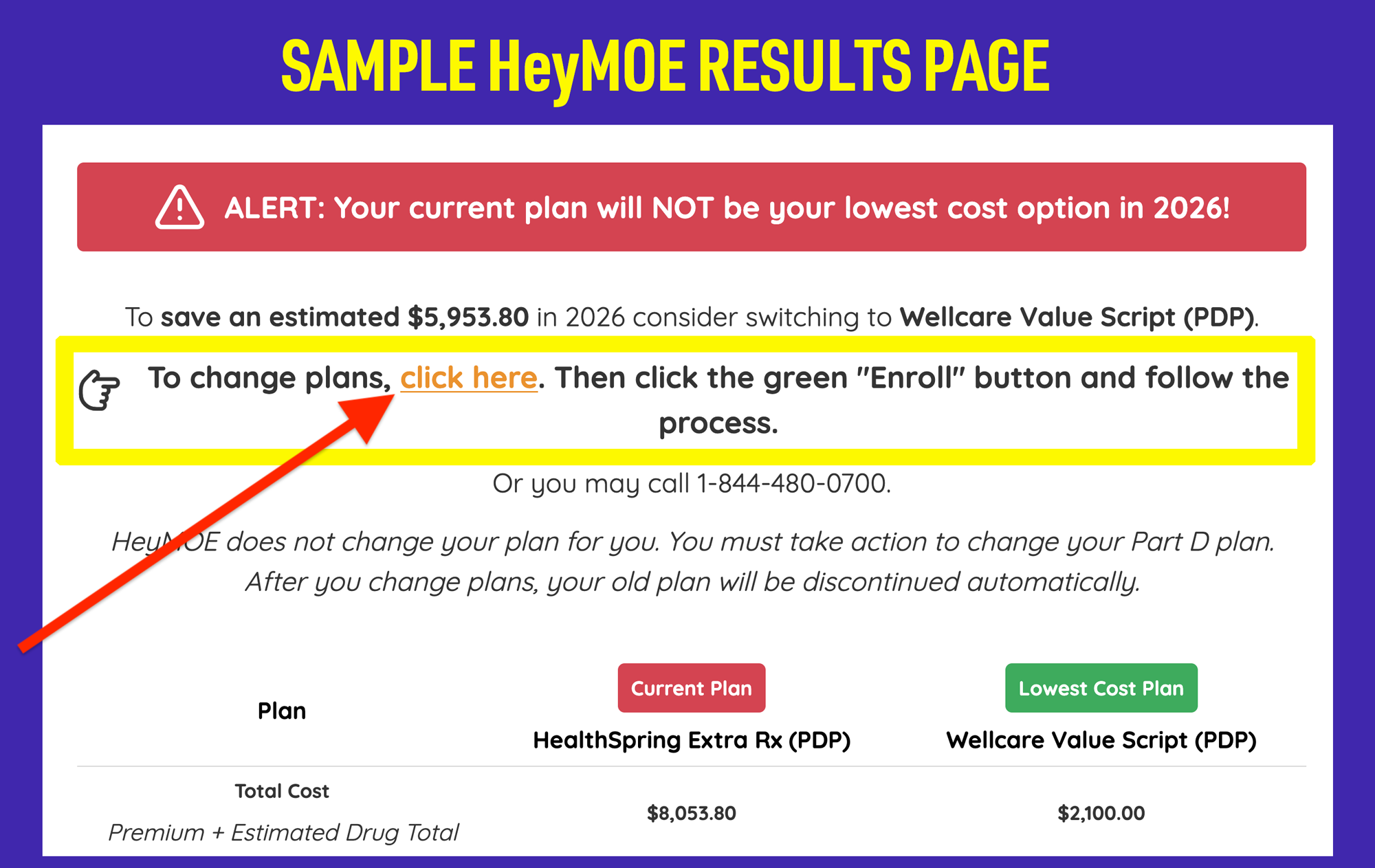 HeyMOE is a Part D plan comparison tool only. HeyMOE will NOT enroll you or disenroll you from any Medicare plans.